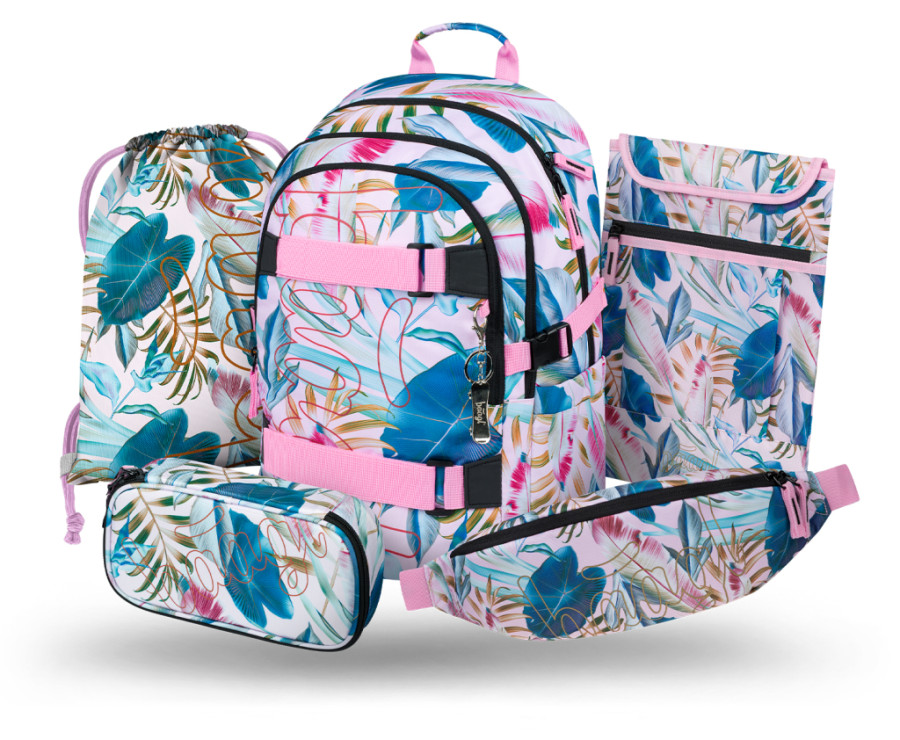 BAAGL SET 5 Skate Leafs: batoh, penál, sáček, ledvinka, obal na notebook