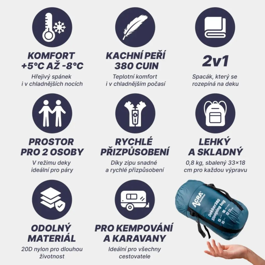 Acra Dekker380 Péřový Spací Pytel 2v1