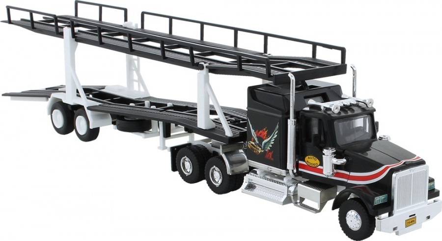 Western Star Autorodeo Trailer je plně mechanicky funkční model nákladního auta ze stavebnice Monti Systém v měřítku 1:48.