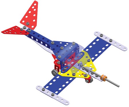 Ze stavebnice Merkur M 015 Ratetoplán je možné podle návodu sestavit až 10 různých modelů, ale tento počet neni konečný, jelikož fantazii každého malého konstruktéra se meze nekladou. Obssahem stavebnice je 195 dílků.