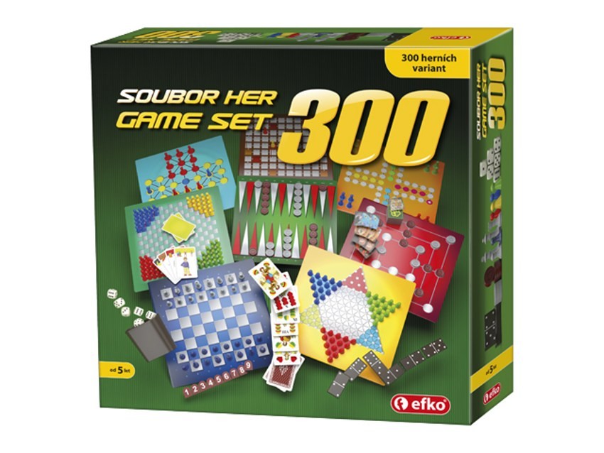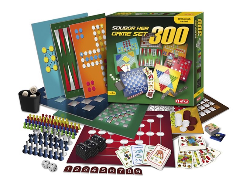 Obsahuje 300 různých variant her pro hráče různého věku. Najdete v něm šachy, dámu, mlýn, halmu, samotáře, člověče nezlob se, backgammon (vrhcáby), hry s kostkami, domino, karty mariášové a mnoho další zábavy pro malé i velké. Vyrobeno v ČR.
