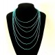 Náhrdelník navlečený na vlasci. Náhrdelník tvoří 6 řad navlečených skleněných tyček. Barva tyček je smaragdová.